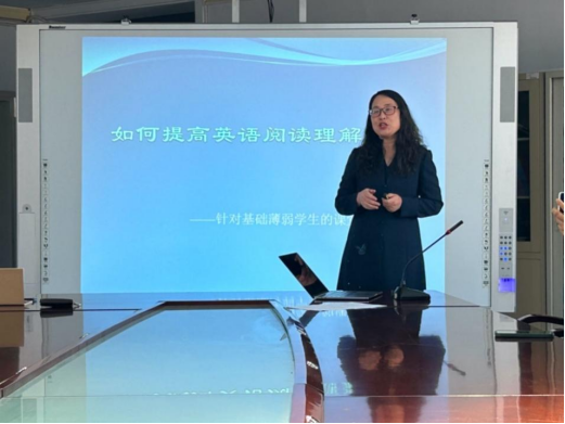 马玉芳教授以“如何提高英语阅读理解能力”为题分享了针对基础薄弱学生的课堂教学策略。她强调由于授课对象基础比较薄弱,为让知识点深入与细化,帮助学生在有限的时间内掌握阅读技巧,教师需要利用合理手段,她以第二单元smart cars为例,为现场参会教师展示如何引导学生找出主题信息和主旨信息,如何扫读找到信号词,以上方法使大家获益匪浅。