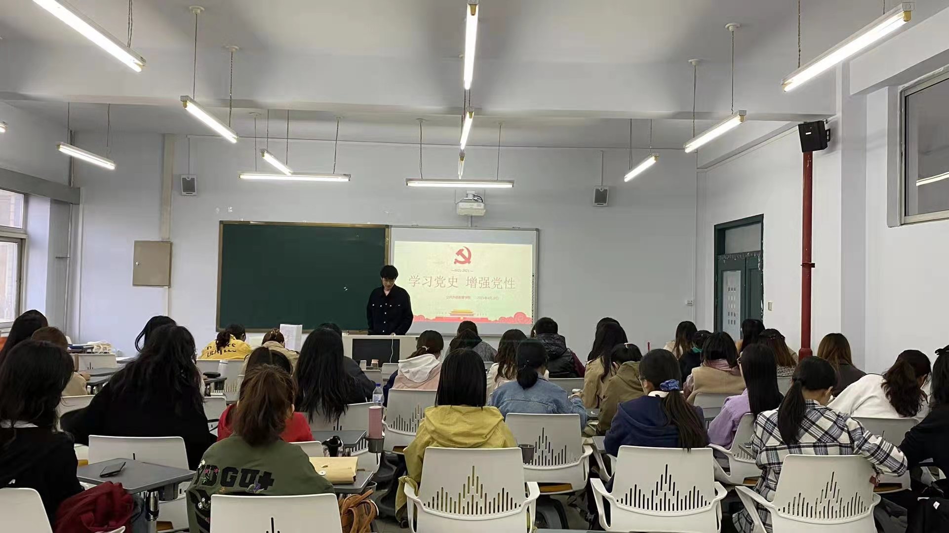 为纪念建党一百周年,弘扬爱国精神,传承红色基因,凝聚党员力量,2021428日晚六点,公共外语教育学院研究生在经信楼D401教室举办了以“学习党史·增强党性”为主题的党史知识学习暨知识竞赛活动。20192020级全体党员、发展对象和入党积极分子参加了此次活动,本次活动由学院团委组织部金泰安同志主持。