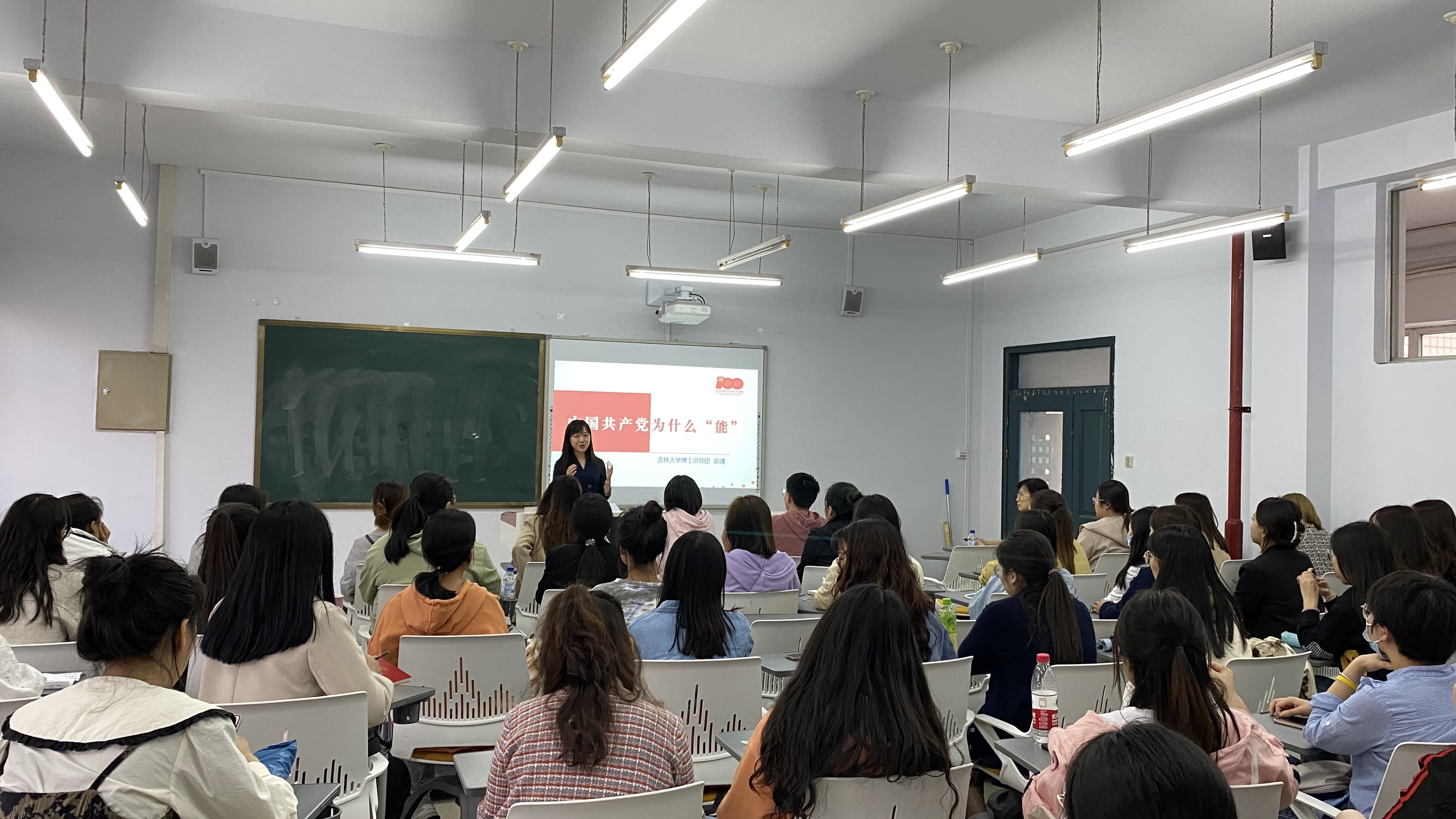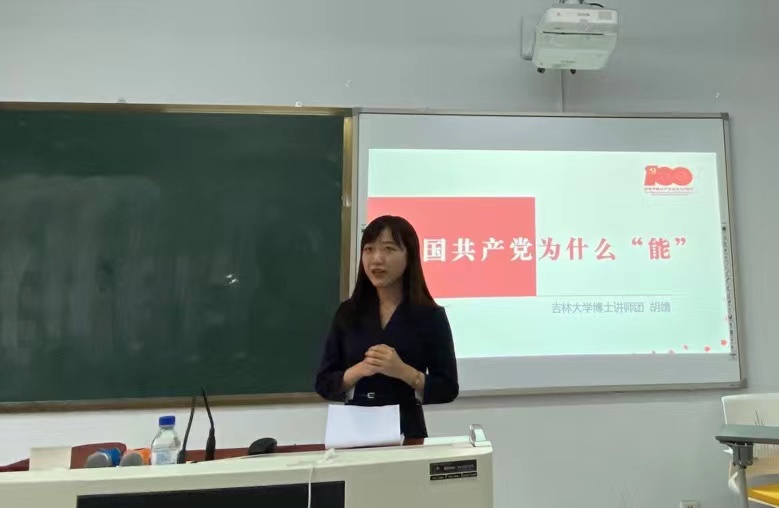为庆祝中国共产党建党一百周年,进一步让广大研究生在党史学习教育中“明理、增信、崇德、力行”,5月24日18:30,在经信楼D401教室,吉林大学博士讲师团讲师胡靖为华体会最新官方学生三个党支部的全体中共党员、发展对象和入党积极分子上了一堂主题为“中国共产党为什么‘能’”的党史课,本次活动由辅导员曾媛主持。
