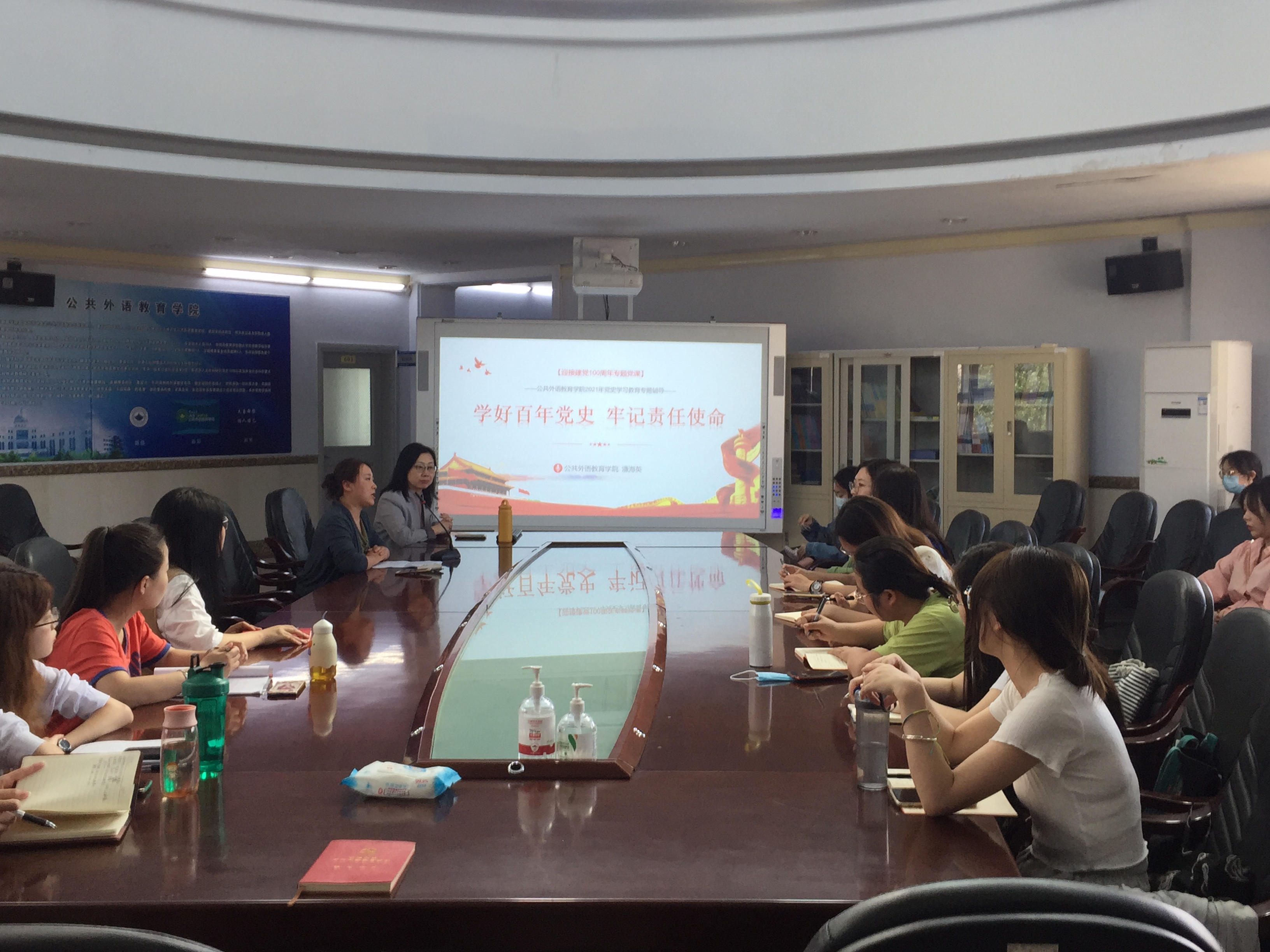 为庆祝中国共产党建党100周年,加深同学们对党的认识,提高学生的学习能力,坚定理想信念,2021617日下午1330,在外语楼六楼大厅公共外语教育学院潘海英院长为学院研究生一支部和二支部党员讲授了一堂以“学好百年党史·牢记责任使命”为主题的党课,院党委副书记徐杰主持此次活动,研究生辅导员曾媛列席。
