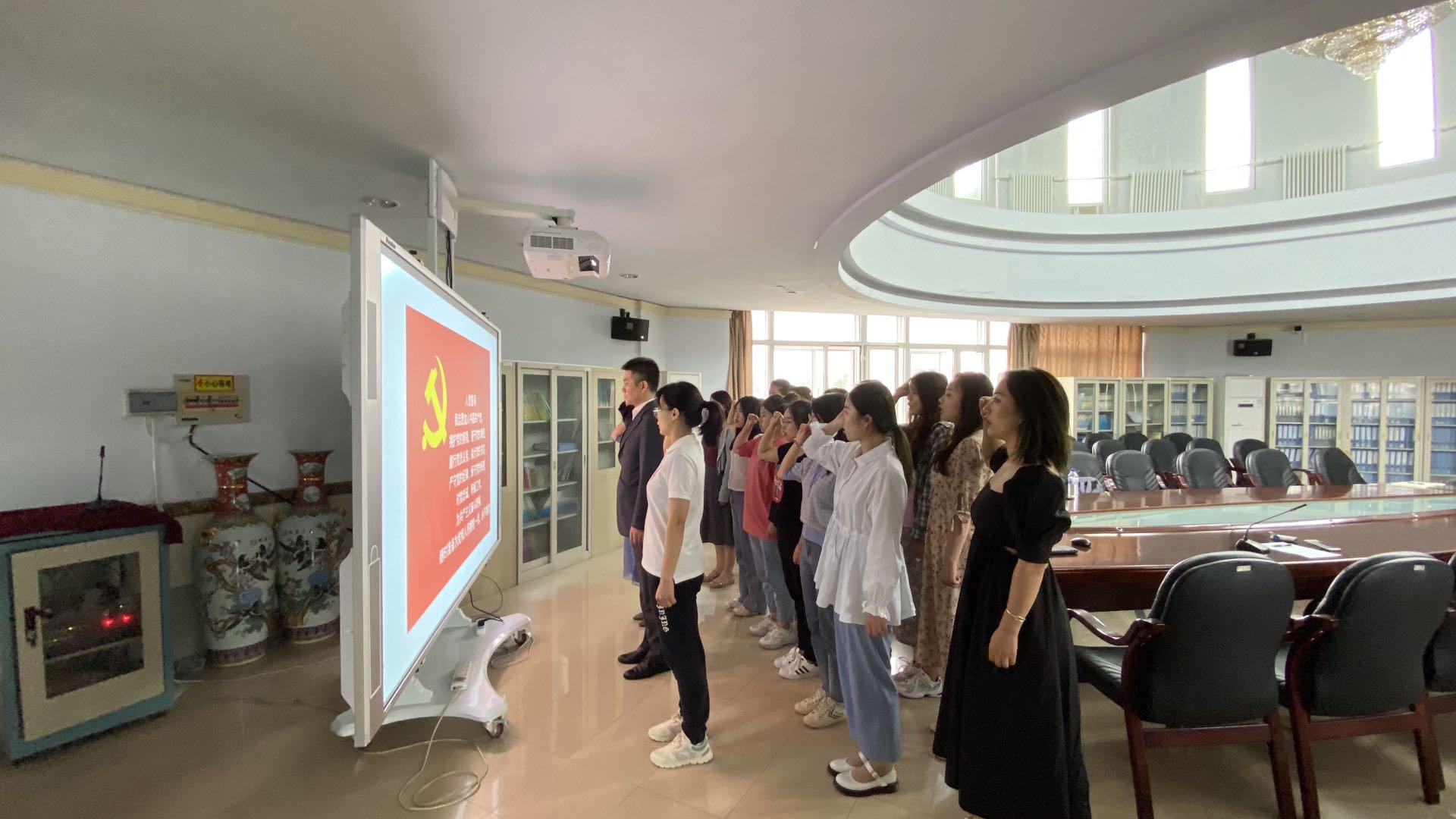 最后,毕业生党员在贺强书记的领誓下庄严地举起右手,面向鲜红的党旗重温了入党誓词。本次党课是对毕业生们开启人生新篇章前的一次心灵洗礼,相信我院毕业生们一定会在即将开启的新征程中坚定理想信念,勇担重任,不忘初心,砥砺前行。