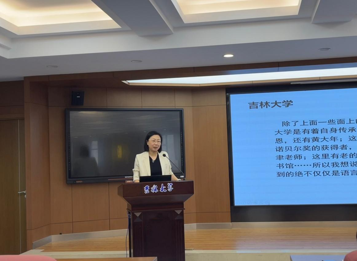 潘院长回顾了公共外语教育学院的发展历程,从历史沿革、学院定位、人才培养、学科建设、科研成果、及国内合作等方面介绍了学院的基本情况。潘院长提,吉林大学是有着自身传承和精神的一所大学,学校和学院所提供的资源是立体化和多元化的的,同学们在这里能过学到和感受到既有知识,有见识。潘院长鼓励同学们利用好学校资源,感受整体氛围,走出去,多沟通多接触。
