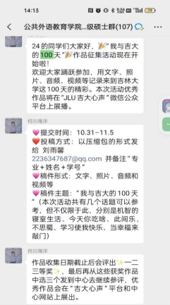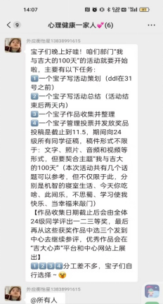 为增进2024级新生对学校的归属感,促进彼此间的交流与分享,公共外语教育学院于2024年10月31日举办“我与吉大的100天”心理健康活动。本次活动历时九天,旨在通过多样化的稿件形式,让新生们回顾并记录下自己在吉大的点滴生活,展现丰富多彩的校园生活。