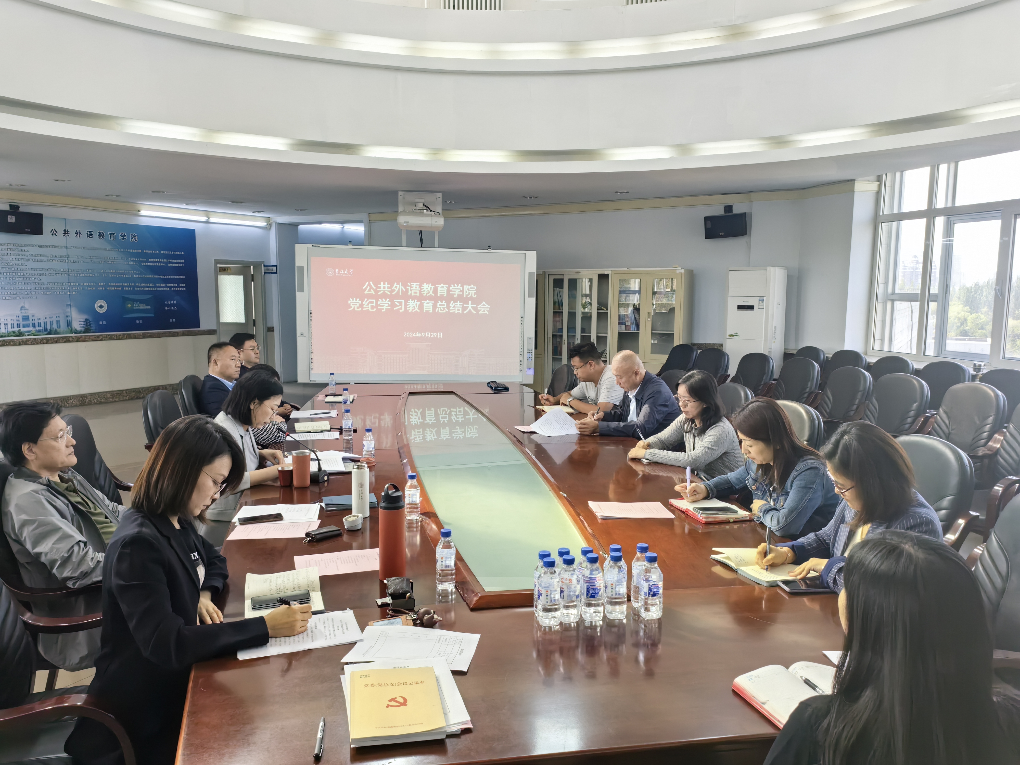 2024929日,公共外语教育学院在外语楼六楼会议室召开党纪学习教育总结会议。会议由党委副书记徐杰主持,学校党建工作联络员苏维彪列席会议,党政领导班子成员、党委委员、纪委委员、各科室负责人参加会议。
