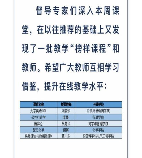 在专家走课堂过程中,八教教师迎来了张希校长的课堂走访并在校督学专家评课中获得好评。10月4日上午,张希校长走进了新民第二教学楼娄彦春老师的《英汉翻译基础》课堂。娄老师授课内容丰富详实,既有知识的讲解,又有文化的传授。同时,他还很好地融入思政内容。娄老师授课幽默风趣,师生互动良好,受到张校长的好评。在106日吉林大学本科教学质量周报(第六期)中,督导专家们评出了新一批“榜样课程”。八教刘景珍老师的《大学英语BIV》课程位列其中。刘老师在课上带领学生以生动、活跃的课堂氛围,分析教材、拓展国际视野、把课文内容与中国传统智慧相结合,注重培养学生的文化自信,获得了督学专家们的一致好评和推荐。另外,八教教研室主任董晓航老师在质量提升月期间,在上课之余通过观看线上回放的方式在两个校区的两个年级中听课5次,并与相关教师进行了亲切的交流,给予了充分的鼓励和建设性的意见。