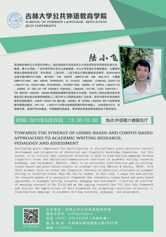 题目:Towards the synergy of genre-based and corpus-based approaches to academic writing research, pedagogy and assessment