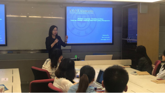 3月29日下午,潘海英教授和姜峰教授,应城市大学邀请进行学术工作坊活动。工作坊围绕语言学研究的理论和方法展开讨论。潘海英教授做题为:Foreign Languages Teaching in China:Review and Prospect(中国外语教学回顾与展望)的学术讲座报告。姜峰教授做题目为Nouns and academic interactions: Structure and function in disciplinary writing(《名词与学术互动:学科话语中的结构与功能》)的学术报告。城市大学翻译及语言学系的师生积极响应,对两校的教学和写作方法展开了深层解读和讨论,双方讨论热烈。