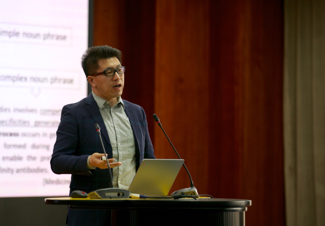 姜峰教授做题为“Prescription and reality: What should we teach to our students? ”的主题报告。他从学术英语写作中学生实际遇到的语言问题入手,以学术写作中大量的文本阐释了不同体裁不同学科在学术写作中所呈现的特点。他的报告主要给出了三个他自身研究中的典型范例,从不同角度详细对比在学术写作中的具体应用。最后姜教授还为学术英语写作的研究提供了宝贵的网络数据库资源。他的报告是使在座师生对学术英语写作有了更深入的了解,得到一致好评。