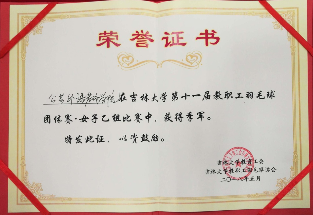 公共外语教育学院在吉林大学第十一届教职工羽毛球团体赛中喜获佳绩