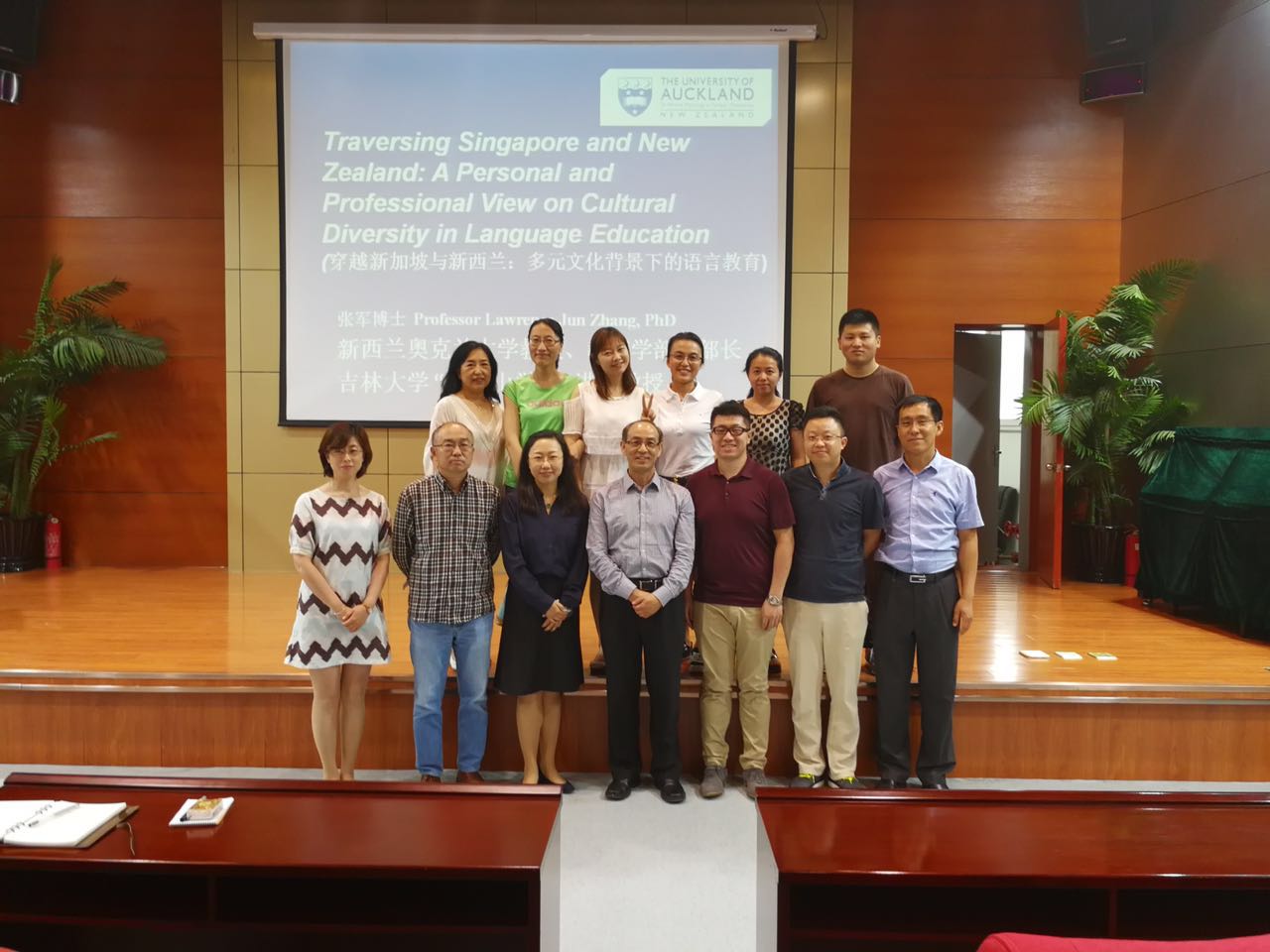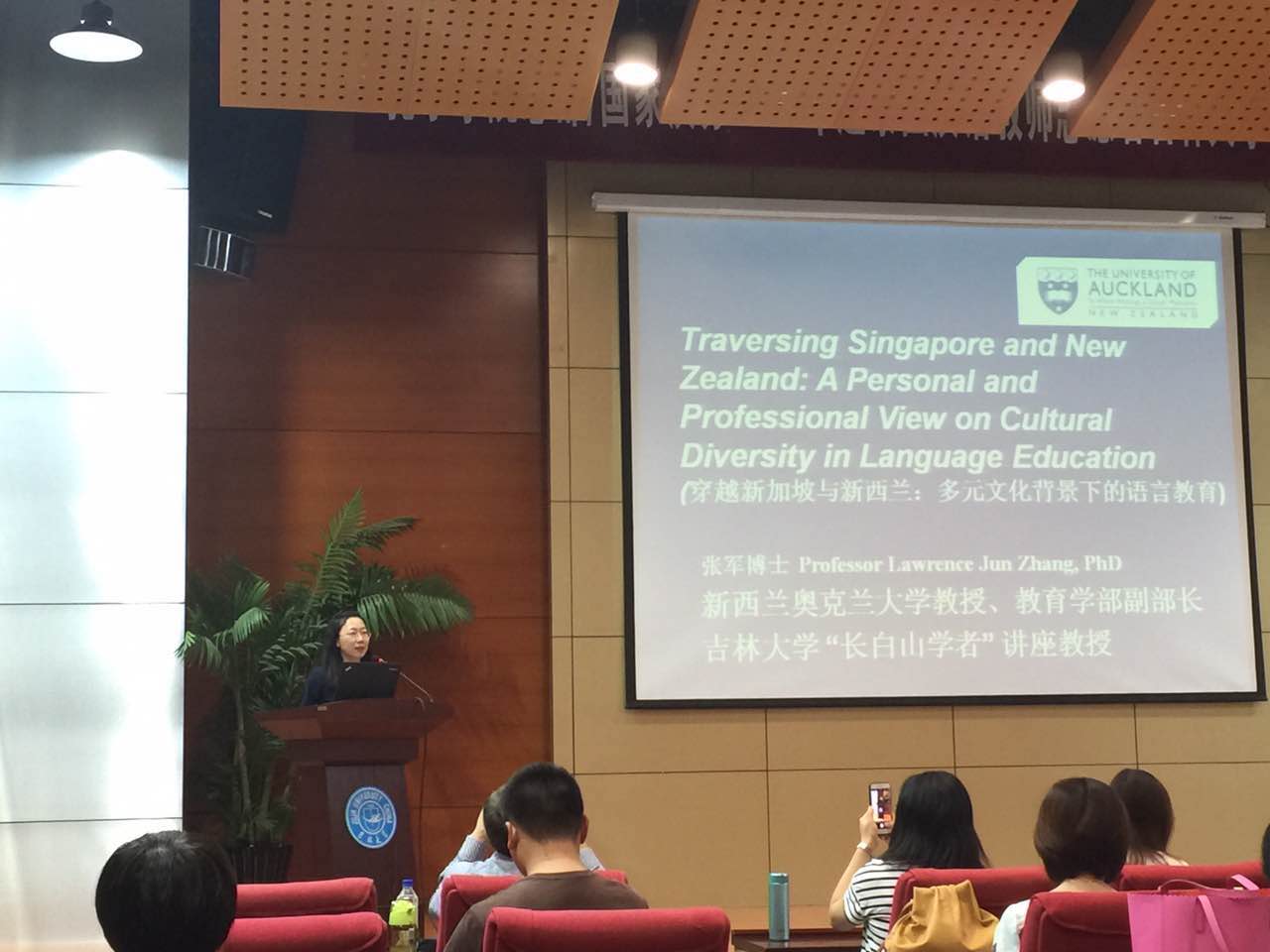 2017年6月23日,由华体会最新官方、吉林大学高校外语教育研究中心和吉林大学学生就业创业指导与服务中心共同举办的吉林大学“国际组织人才培养与推送”系列讲座第三讲,暨华体会最新官方“国际组织 中国参与”系列讲座在国际大讲堂顺利举行。本次讲座邀请新西兰奥克兰大学教育学院副院长、吉林大学“长白山”讲座教授张军教授为参会的老师与同学们做了题为“Traversing Singapore and New Zealand: A Personal and Professional View on Cultural Diversity in Language Education”(穿越新加坡与新西兰:多元文化背景下的语言教育)的主题讲座。学院院长潘海英教授、副院长王守宏教授和我校师生共同参加了本次讲座,讲座由潘海英教授主持。