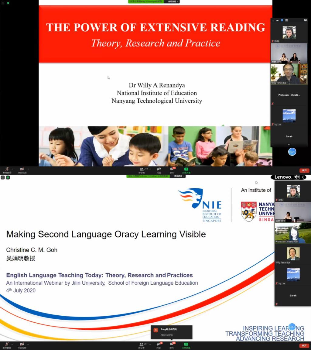 本次线上研讨关注新形势下英语教学的主要问题、最新成果、学术热点、学术动态及发展趋势,是我院推动与国内外专家学者交流合作的又一部署与举措。会议由我院教师马小浩博士主持,院长潘海英教授到会并致开幕词,副院长杜中全副教授参会。潘院长指出,公共外语教育学院历经几十年发展,目前正以吉林大学“双一流”建设为核心,不断探索外语教育新举措,加强学科建设并已取得喜人成绩,同时她也对莅临会议的各位嘉宾表达了诚挚的谢意和欢迎。上午时段,新加坡南洋理工大学国立教育学院Willy Renandya博士、Christine Goh教授、香港中文大学教育学院Icy Lee教授分别就如何进行英语泛读教学,如何进行英语听说教学,如何引导学生进行反思性写作来提升学习效果这三大问题做了精彩发言。下午时段,华体会最新官方姜峰教授、汕头大学文学院方帆教授、牛津大学教育学院Heath Rose博士围绕学术话语的立场表达和英语作为世界语背景下的英语使用者身份和英语教学实施路径两大话题展开讨论。六场报告精彩纷呈,触及听说读写技能、元认知与学习策略、话语能力、学习者身份、语言教学方向等多个英语教学中的核心问题,获得参会专家和师生的一致好评。与会人员对此次线上会议给予极高的评价,他们表示会议内容丰富、含金量高,对今后的教学和科研工作有极大启发,会议形式符合疫情防控工作要求,组织有序。