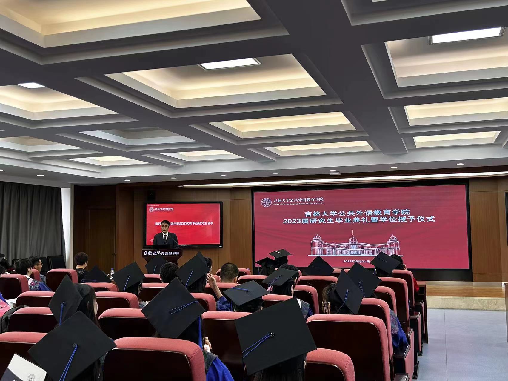六月仲夏,繁花似锦,硕果累累。2023年6月21日上午9点,公共外语教育学院在外语楼五楼报告厅隆重举行2023届研究生毕业典礼暨学位授予仪式。公共外语教育学院学院全体领导班子成员、学院学术委员会主任战菊教授、研究生导师代表李锡江教授等出席典礼,2023届全体毕业研究生参加典礼。典礼由学院党委副书记徐杰主持